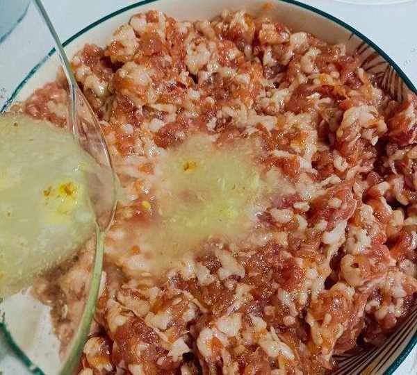 第7步、混合均勻肉餡完成。