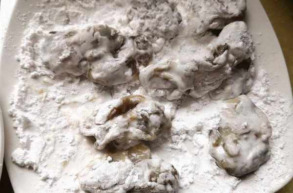 食材:海蠣子一盤,淀粉適量,椒鹽料少許