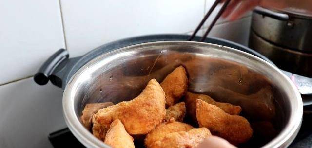 6、鍋裡倒入適量的油,油熱以後開始下油鍋炸