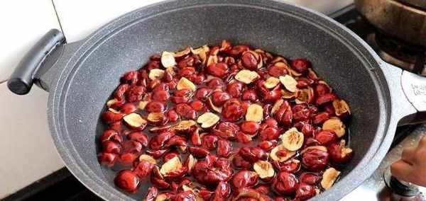 2、接下來把紅棗的核全部都去掉,然後把紅棗倒入鍋裡煮,加入水剛好淹沒棗