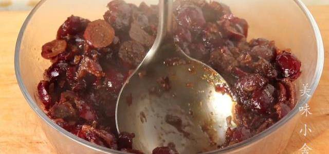 這個粘糕的紅棗豆沙餡就做好瞭。