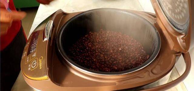 把紅豆清洗幹凈倒入電飯煲裡面,往裡面加入少量的水剛好淹沒紅豆,按煮飯鍵把紅豆煮熟