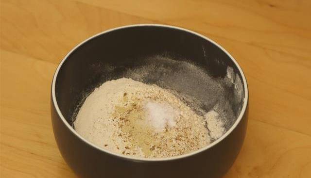 5.制作五香油酥:碗中放入40克面粉,五香粉適量,鹽2克,白胡椒適量攪拌一下。
