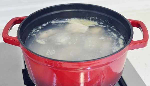 2.雞翅跟涼水一起下鍋,開鍋後煮2分鐘左右,見有浮油浮沫飄起,即可關火撈出控水。