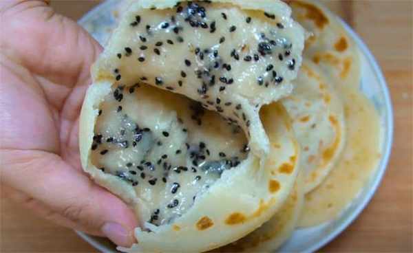 7.咱們的燙面糖餅就做好瞭,給大傢看一下裡面的餡,外酥裡軟又好吃,喜歡就趕緊在傢試試吧。