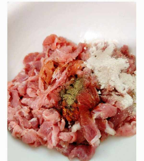 2.放入生抽、料酒、胡椒粉、淀粉(可以放多一點,醃制一下,牛肉的口感會更嫩)。