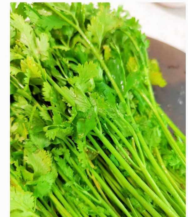 4.準備好香菜,清洗幹凈,切長段備用。
