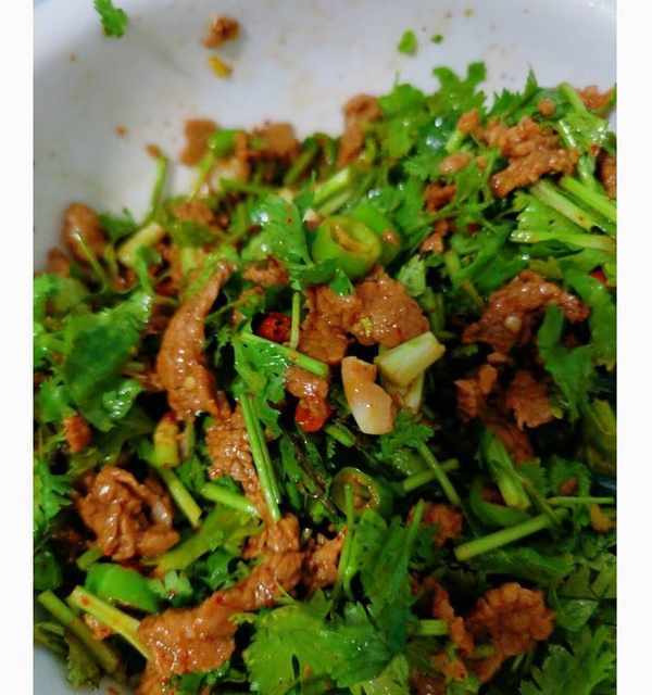 11.裝盤,好吃的香菜拌牛肉就完成瞭!!
