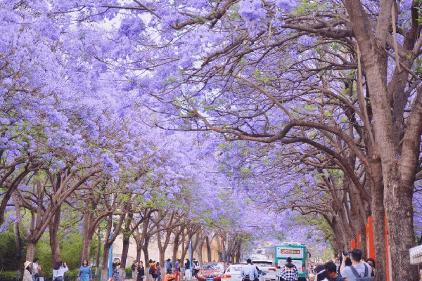 四月的昆明,有著最美人間四月天所具備的一切特質,特別是五華區教場中路的551棵藍花楹,藍得沉醉、紫得夢幻。