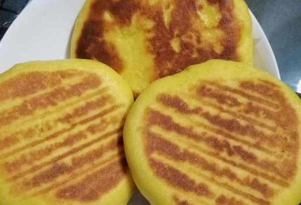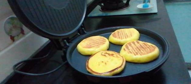 在手上和案板上抹上油,防止揉面的時候粘手,把面團倒在案板上,揉成一個長條。再分成大小均勻的劑子,取一個劑子在手上按壓成一個圓餅,或壓成自己喜歡的形狀也可以,把餅全部做好後,蓋上保鮮膜,再次餳8—10分鐘。電餅檔提前預熱,在刷上一層食用油,把餳好的面餅,放到電餅鐺裡面,在面餅的表面再刷上一層油。把面餅煎至兩面金黃,再關火燜2—3分鐘,能使餅更加的熟透。