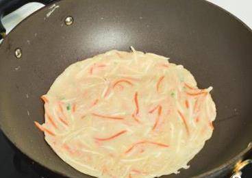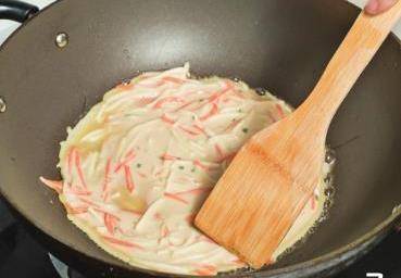 7用木鏟將面糊攤平,煎2~3分鐘後翻面。
