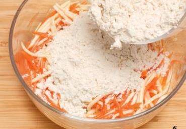 準備材料:茭瓜1根,胡蘿卜半根,雞蛋2個,面粉100克,植物油50毫升,鹽1/2茶匙,胡椒粉1/2茶匙,大蔥1段
