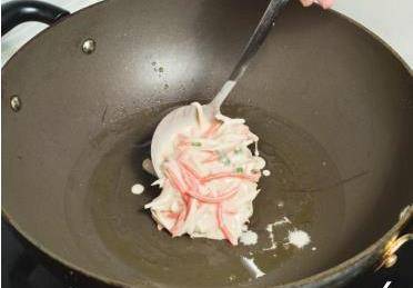 6油熱後將茭瓜雞蛋面糊倒入鍋中。