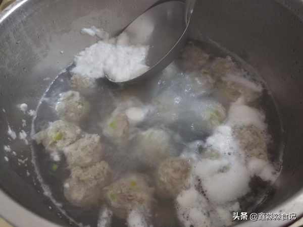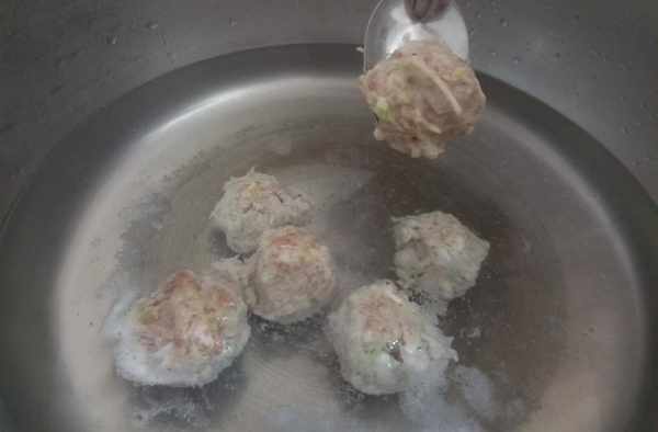 2,煮丸子的火候也很重要,向鍋裡放肉餡的時候一定用小火,定型後再改大火。