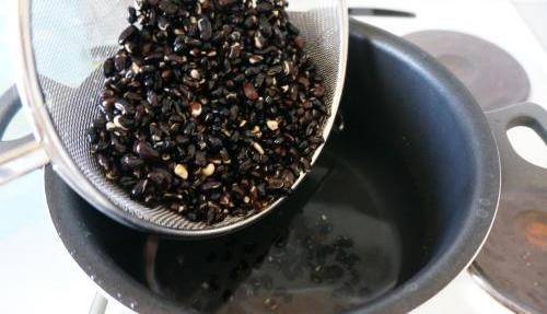做法: 1.買一些超市中售賣的黑豆即可,如果想要做很地道的日式蜜黑豆,可以去雜糧店購買「丹波黑豆」,這種豆體型較大,洗幹凈之後就可以準備煮醬汁瞭。(圖為黑豆)