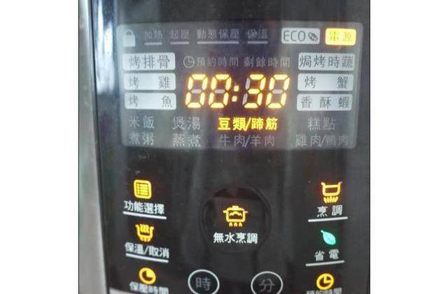 4.熬煮黑豆的步驟,根據個人的習性可挑選快鍋或者鑄鐵鍋熬煮黑豆,我熬煮黑豆的時候使用的是飛利浦的智慧萬用鍋(快鍋)的「豆類/蹄筋」模式先煮一次,等到黑豆煮軟之後,在放在鑄鐵鍋中煮約40分鐘收汁。煮完之後還是會感覺水水的,稍微冷卻之後就會變得濃稠,放在冰箱中冷藏之後會更加濃稠。(圖為快鍋煮黑豆)