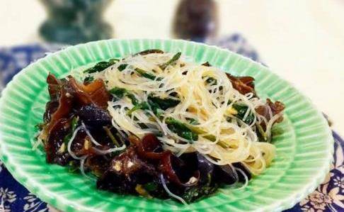 第六個想要介紹給大傢的美食就是涼拌木耳粉絲枸杞苗,功用:清熱補虛,養肝明目。相信你吃完之後一定回味無窮