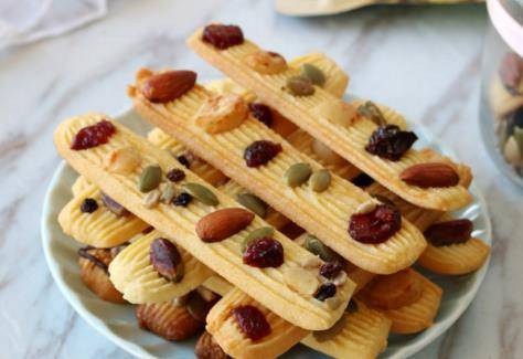 第五個想要介紹給大傢的美食就是堅果薄脆曲奇,如果面糊太幹不好擠,可以放溫暖的地方加熱一下,如果面糊太稀,可以放冰箱中冷藏20分鐘,讓人回味無窮