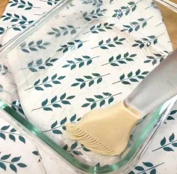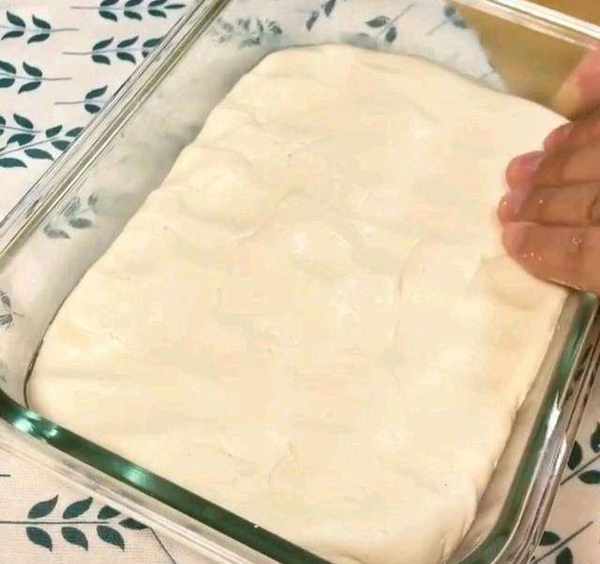 第三步,然後準備個盤子或者器皿,底部刷一層油,將和好的糯米團平鋪在裡面。然後放入蒸鍋內,涼水上鍋蒸,開鍋後蒸15分鐘關火再燜5分鐘。