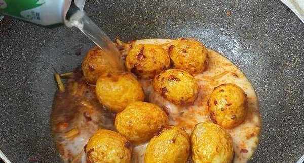 把雞蛋清洗幹凈冷水下鍋,煮十分鐘之後,撈出雞蛋放入涼水中,把雞蛋剝去殼,再用刀劃幾個口子,然後放入5成熱的油中炸至表皮呈現虎皮狀,然後撈出,鍋中留少許的油,先把薑絲和蔥段炒香,再放入紅油豆瓣醬,炒出紅油之後,再放入雞蛋炒勻後再放入一罐啤酒,適量的老抽,生抽,蠔油,炒入味後小火收汁就可以瞭。