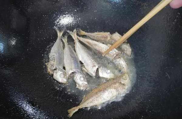2.下油熱鍋,將解凍好的小海魚放入鍋中。煎小海魚,千萬不能心慈手軟,等油溫差不多瞭,直接使用中大火進行煎煮。當然,如果有怕腥的朋友也可以在煎前給魚放一些薑絲或者薑片幫助去腥,如果對於海魚的味道還算喜歡,則可不必,直接煎煮即可。