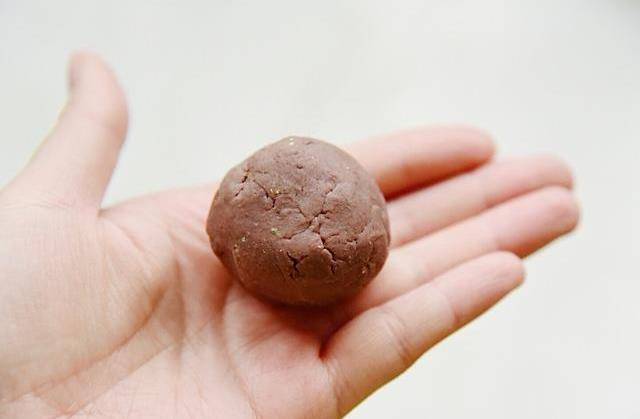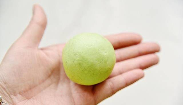 9、再用艾草面團包入豆沙餡,慢慢的收口,搓圓即可搞定瞭。