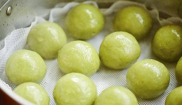 10、鍋中加入適量的冷水煮開,把青團放入篦子上大火煮蒸,時間在10分鐘左右。然後取出趁熱再刷上一層食用油就完成瞭。剛出鍋的青團軟糯可口,可謂是一連吃3個還不過癮呢。