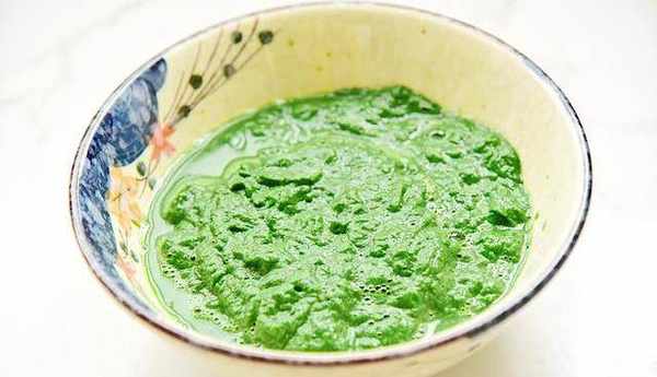 4、把焯過水的艾草放入榨汁機裡加入170g的溫水榨成汁。