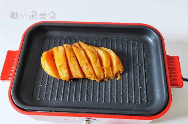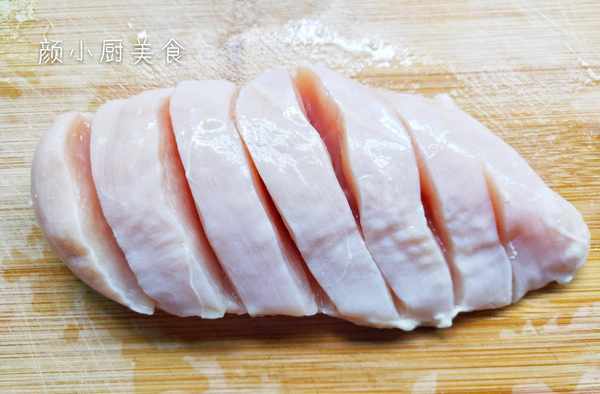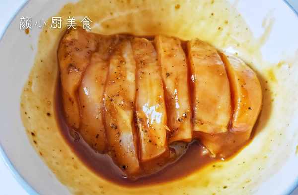 醃制雞胸肉時放點淀粉醃制,做出來的雞排比較嫩滑,口感非常好。雞胸肉可以切成薄片醃制,直接煎熟也可以,這個看個人喜好即可。