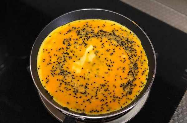 雞蛋4個,火腿腸1根,黑芝麻適量