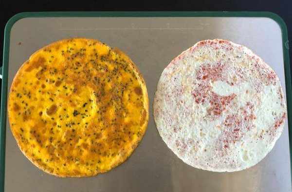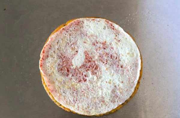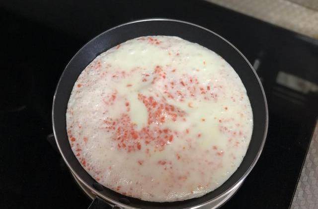 5.準備鍋,鍋底刷一層薄薄的油即可,倒入蛋清,攤成圓餅,兩面煎熟出鍋備用
