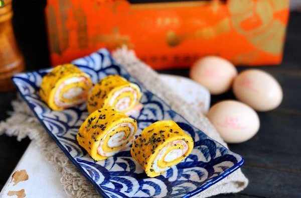 我今天分享的雙色雞蛋卷就是以雞蛋作為主要食材,添加瞭一些火腿碎和黑芝麻,主要是為瞭顏值考慮,看起來就有食欲是很重要的,火腿切得很細碎,孩子吃完全沒有負擔,並且添加的量也不是很大,可以增加一些香味兒,沒有放鹽,給寶寶吃很適合,並且吃起來並不會感覺味道很寡淡,算是恰到好處吧!卷好以後的雞蛋卷我用竹簽串成串兒,兒子拿著就吃瞭,覺得很有意思!