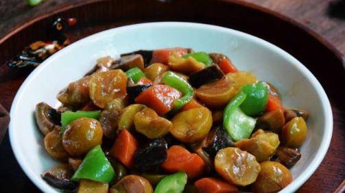 第四個想要介紹給大傢的美食就是蘑菇燒栗子,秋天的栗子很香,素燒的也很好吃哦。可以說是無比美味,非常好吃的美食瞭