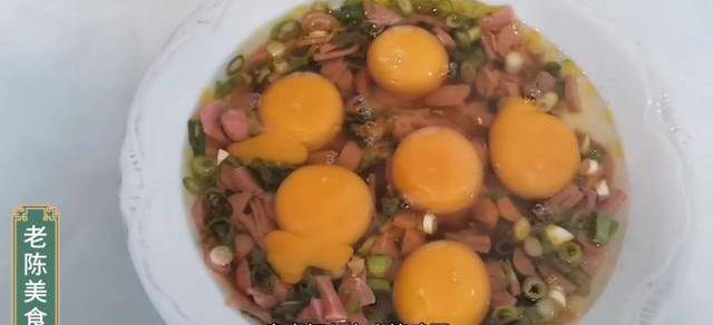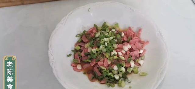 首先要準備一個深點的盤子,碗中加入生抽、一勺蔥末,料酒少許,食用油一點,適量鹽,蔥花,火腿丁,攪拌均勻。