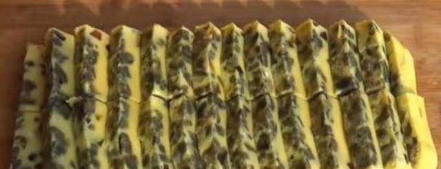 6、蒸好後倒在案板上,切成片即可。