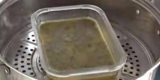 5、蒸鍋中放入清水,水燒開後,放入雞蛋液隔水蒸8—10分鐘。