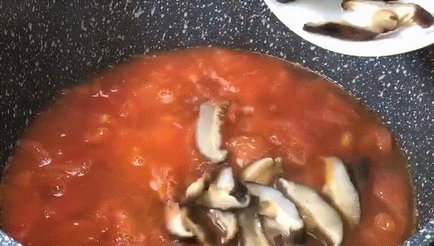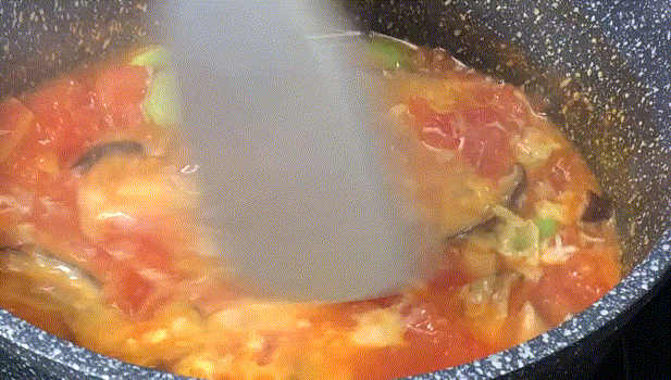 2.鍋裡放適量食用油,放入西紅柿塊,小火翻炒到西紅柿出汁。