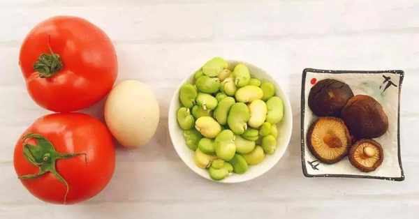 主料:蠶豆,西紅柿,雞蛋,香菇