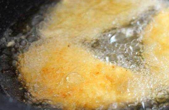 炸到底部發黃,翻面繼續炸朝上的一面。