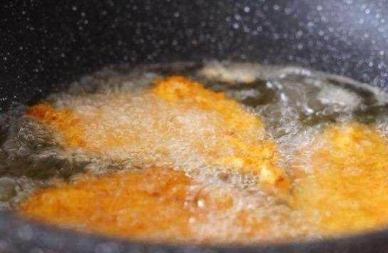 油溫6、7成熱的時候,把雞排放入油鍋。