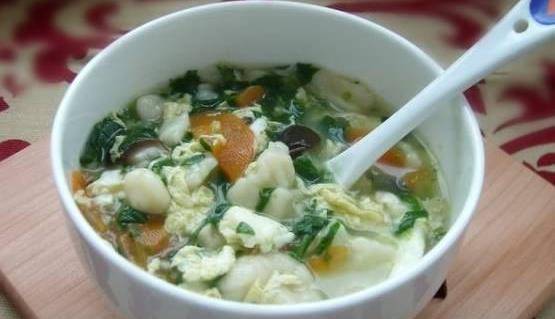7.鍋中水開後放入疙瘩,一邊放一邊用飯勺攪拌,避免粘鍋