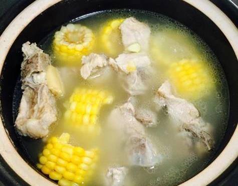 4.把排骨、玉米和幾片生薑一起放在砂鍋裡