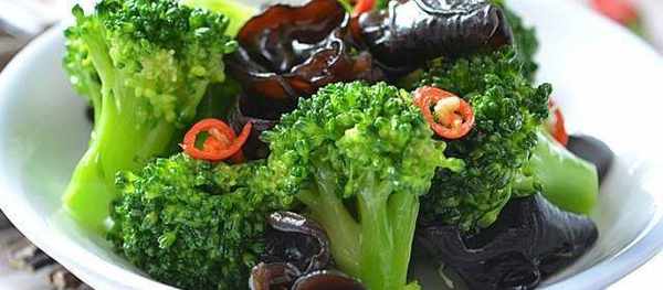 8.西蘭花和黑木耳瀝幹水分後放一起,並把辣椒粒放在上面