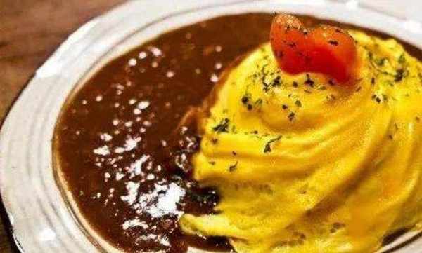 繞著蛋包飯倒入剩下的咖喱。有條件的話,再在蛋皮表面撒上百裡香,擺一個番茄點綴。比起普通版蛋炒飯,口感更水潤、別致,吃一口,你一定會融化的。