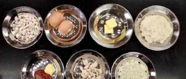 翻炒均勻後,即可裝入小碗,壓實,倒扣於盤上,不動。