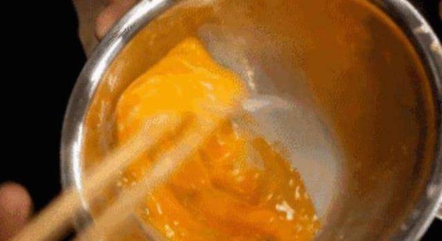 第4~6秒,用筷子從蛋液兩邊劃至鍋子中心,