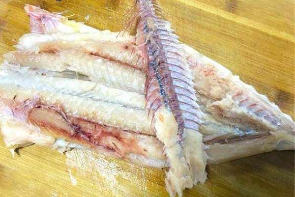 首先處理大鮁魚,鮁魚的肉非常的松軟,鮁魚先去掉頭部、魚鰭魚尾,然後用刀切開,把中間的一根大刺取出。