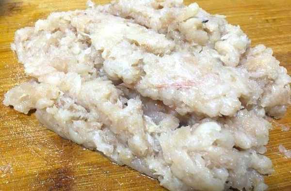 用鑷子把鮁魚剩下的小刺一根根的夾出來,然後用刀剁成肉末。