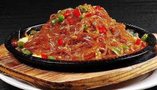 鐵板水晶粉絲:將粉絲用溫水浸泡5分鐘,撈出洗凈;酸包菜切細絲。認為這道美食好吃的可以收藏起來哦!