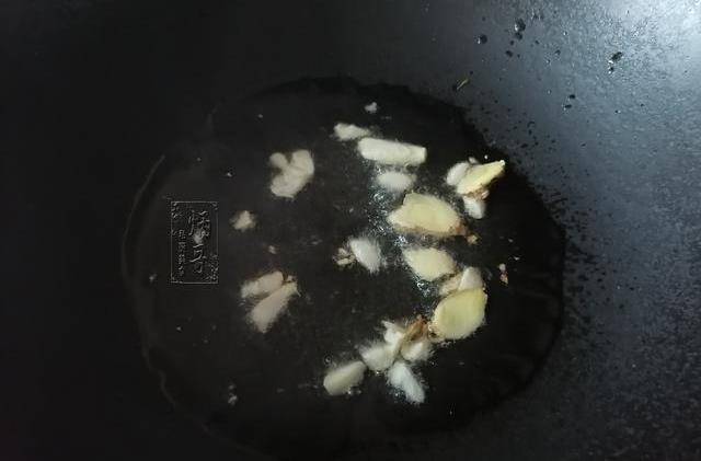 2.第二步,熱油爆香。起鍋熱油,待油溫差不多時將生薑、大蒜一起放入。爆香的時候時間不要太長,否則配料發苦發澀也會影響菜品的口感,炒起來也不美觀。